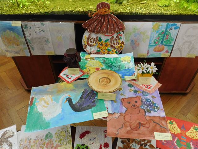На виставці представлені більше 30 робіт, які приваблюють чудово підібраними кольорами та цікавими задумками. В кожній роботі відчувалися теплота душі, доброзичливість і сонячний настрій, які хлопчики й дівчатка передавали за допомогою акварелі, бісеру, дерева, шкіри та природних матеріалів.