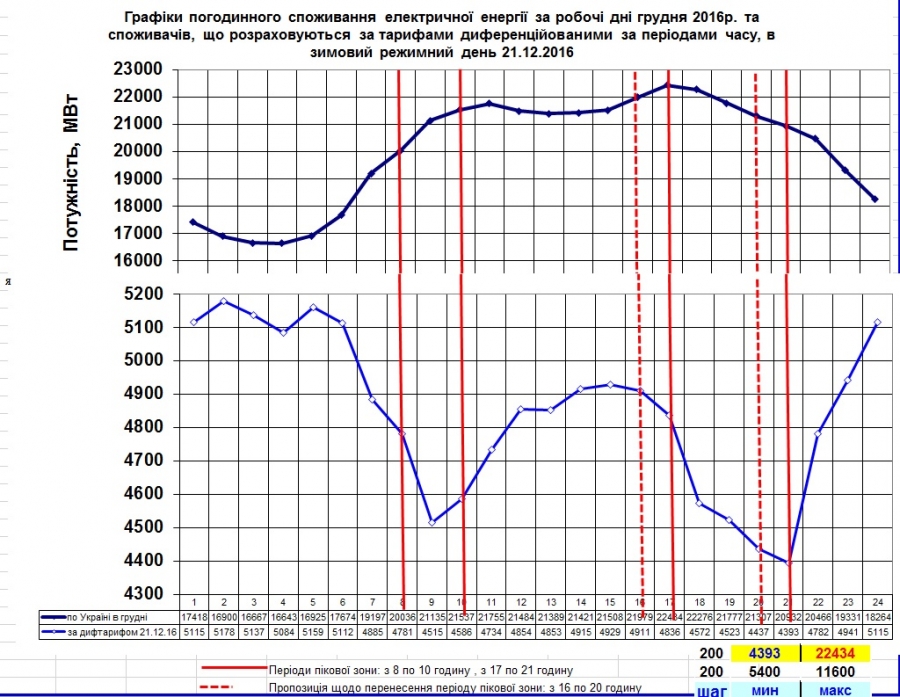 Необхідно зазначити, постановою НКРЕКП від 15.12.2016 № 2239 затверджено періоди максимального навантаження енергосистеми України для оптового ринку електричної енергії України в робочі дні грудня 2017 року на вечірні години встановлені з 16:00 до 20:00.