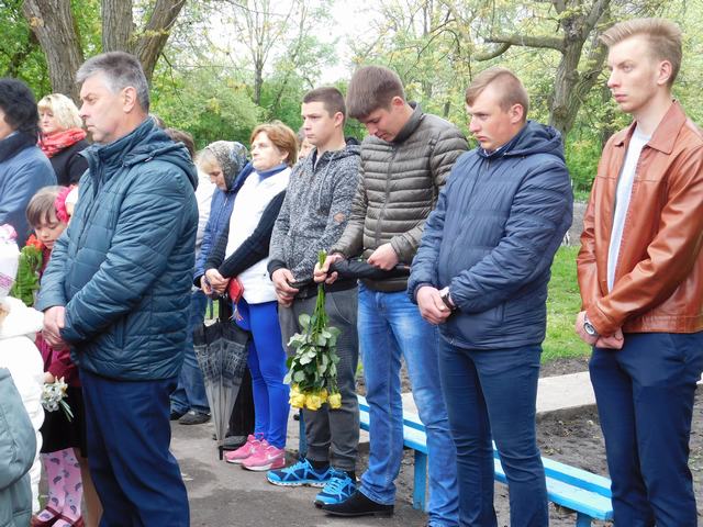 У День пам’яті і примирення на подвір’ї місцевої школи зібрались діти, вчителі, воїни АТО, священнослужитель, обранці громади та ін. щоб увіковічити не лише портрет Героя нової доби. А лишити у пам’яті нащадків наглядний приклад жертовності власним здоров’ям, молодістю заради життя наступних поколінь у європейській незалежній Україні.