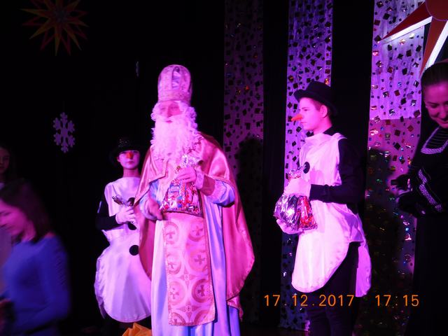 Перед початком вистави заступник голови райдержадміністрації Інна Бас урочисто привітала усіх присутніх з наступаючими новорічними святами, дітям були вручені смачні солодкі подарунки, придбані за кошти районного бюджету.