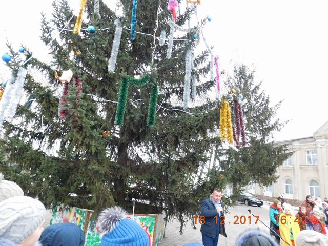 Офіційне відкиття символа різдвяно – новорічних свят відбулось на головній площі селища. Звучала весела музика, вірші, відбувалось театралізоване дійство за участі тутешніх школярів. Привітати присутніх з святом приїхали очільники району, а саме перший заступник голови райдержадміністрації Володимир Боярчук, заступник голови Інна Бас. Також був присутній селищний голова Юрій Кревський. Керівники району привітали присутніх зі святом, побажали усім присутнім міцного здоров’я, благополуччя, здійснення всіх задумів, родинного затишку і достатку.