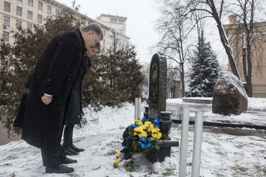 Президент Петро Порошенко разом із дружиною Мариною Порошенко вшанували пам’ять перших загиблих учасників протестів на Майдані – Сергія Нігояна та Михайла Жизневського.