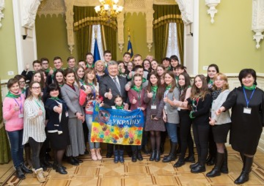 Президент Петро Порошенко разом з дружиною Мариною Порошенко зустрілися та поспілкувалися із учасниками Всеукраїнської акції «Діти єднають Україну». У проекті беруть участь діти з усіх регіонів нашої держави: від Сходу до Заходу. Зустріч із Главою держави стала для дітей сюрпризом, адже вони відвідували Будинок Городецького з екскурсією у рамках програми перебування в Києві.