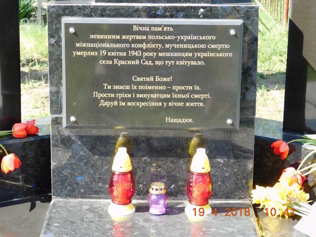 Але 19 квітня 1943 року Красного Саду не стало. Разом із мешканцями. Польські бандити вбили 104 мешканців села Красний Сад.