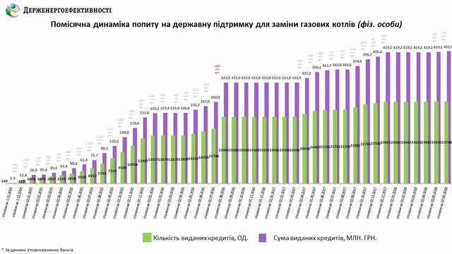 «Цікавим є той факт, що приватні домогосподарства активно цікавляться перевагами альтернативного опалення. Так, минулого тижня видано 56 кредитів на встановлення твердопаливних котлів на суму 1,8 млн гривень. Це у понад 2 рази більше порівняно із попереднім тижнем, коли домогосподарства залучили 27 таких кредитів на суму 700 тис. гривень», - прокоментував Голова Держенергоефективності Сергій Савчук.