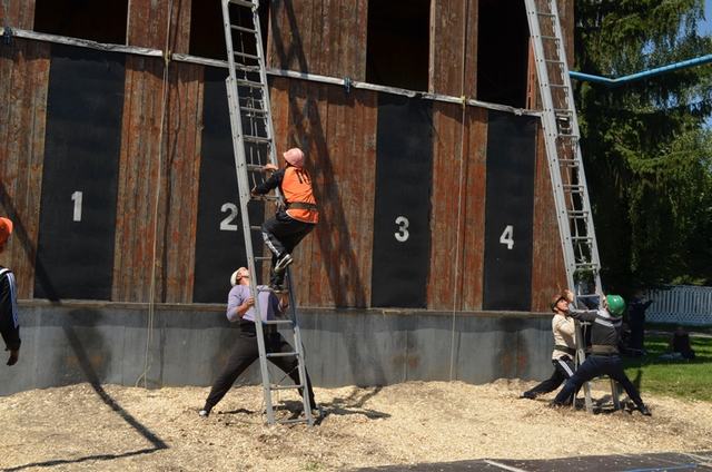 Рятувальники змагались у 5-ти видах: підйомі по штурмовій драбині у вікно 4-го поверху та підйомі по висувній драбині у вікно 3-го поверху учбової вежі, подоланні 100-метрової смуги з перешкодами, бойовому розгортанні та пожежній естафеті.