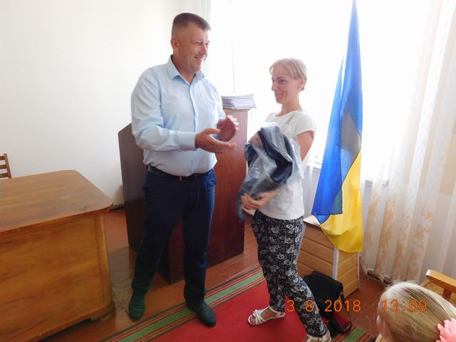 Сьогодні, голова райдержадміністрації Ігор Ярмольський та його заступник Інна Бас вручили 13 шкільних форм для хлопчиків із числа сімей учасників АТО.