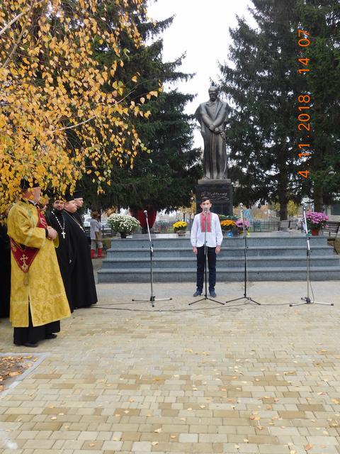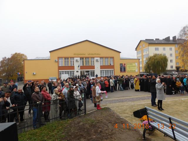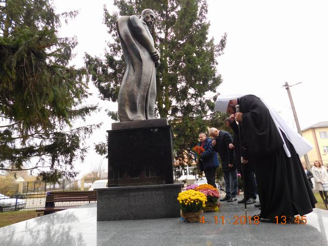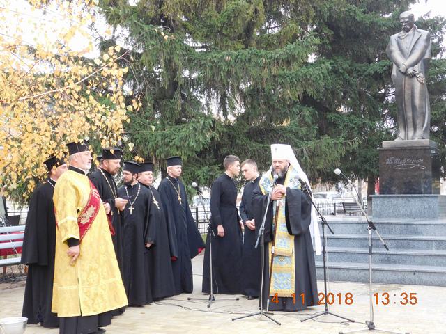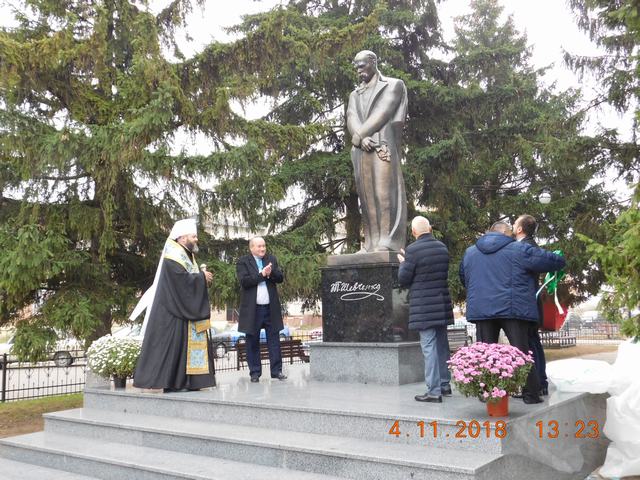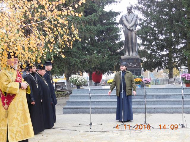 Після урочистого перерізання стрічки митрополит Луцький і Волинський Михаїл здійснив молитву та окропив пам’ятник. У своїй промові він наголосив: «У кожного українця на столі повинно бути дві книги: Біблія та «Кобзар» і від них ми маємо вчитися».