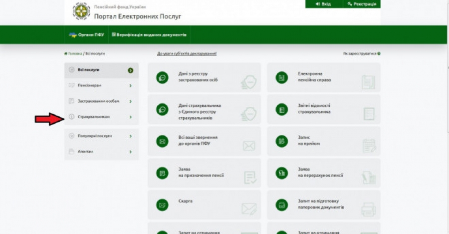 Для цього потрібно зайти на веб-портал електронних послуг Пенсійного фонду, обрати рубрику ПОСЛУГИ, далі підрубрику СТРАХУВАЛЬНИКАМ. Увійти до кабінету роботодавець може через електронний цифровий підпис.