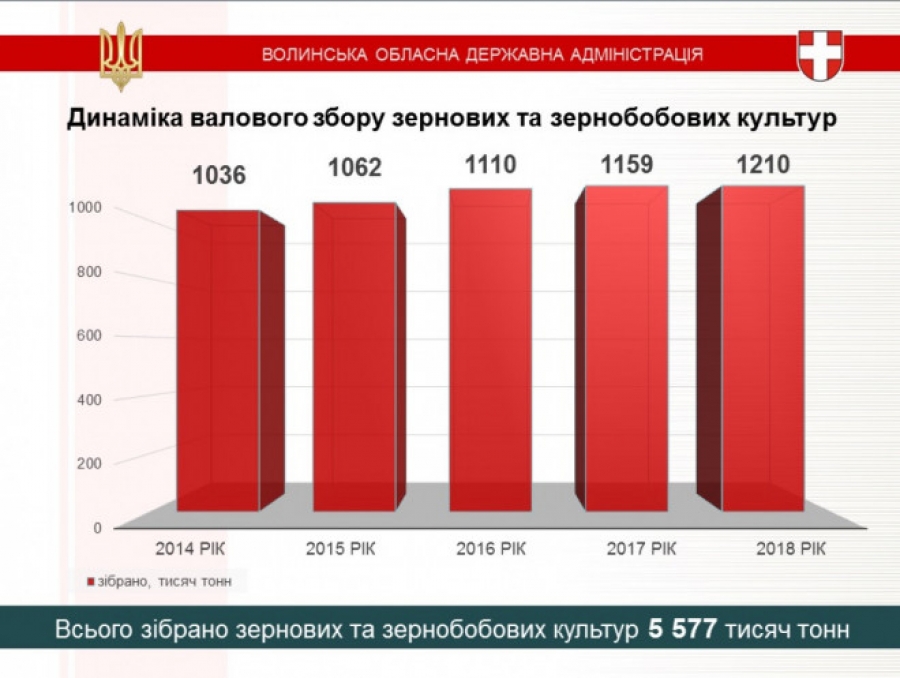 П’ятий рік поспіль або шостий раз за всю історію області, валове виробництво зернових і зернобобових перевищило один мільйон тонн. Цього року вал найвагоміший – 1 мільйон 200 тонн.