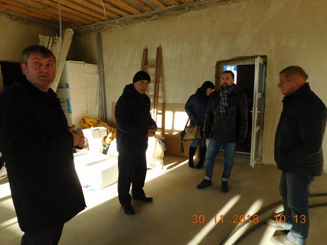 Потому, Тарас Володимирович та Борис Олексійович оглянули дитячий дошкільний заклад в якому проводяться роботи по утепленню фасаду. У садочку діє 2 групи та налічується 62 дитини, ще трошки більше, як 50 діток стоять на черзі.