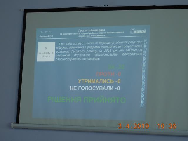3 квітня 2019 року відбулось пленарне засідання тридцять восьмої позачергової сесії Луцької районної ради 7 скликання.