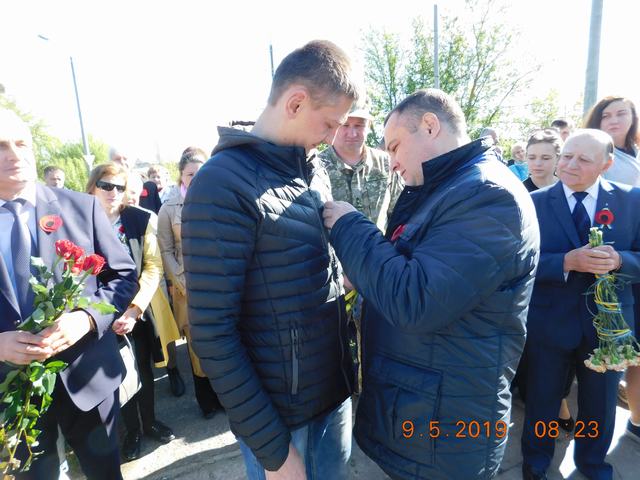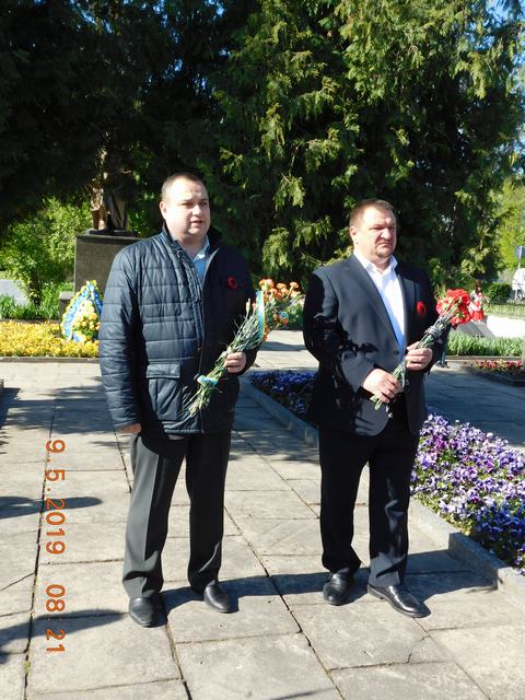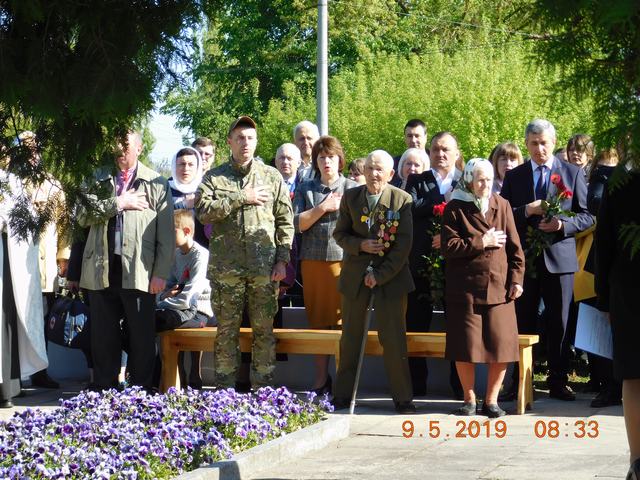 Сьогодні згадали тих, кого немає серед нас в урочистий та пам’ятний день, хвилиною мовчання. Присутні схилили голови перед загиблими воїнами у Другій світовій війні та воїнами, які обороняли й боронять територіальну цілісність України.