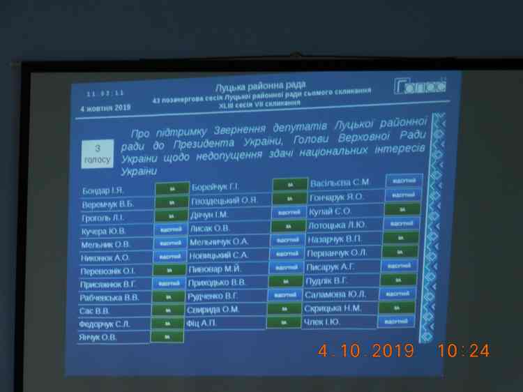 7) Про підтримку Звернення депутатів Луцької районної ради до Президента України та Голови Верховної Ради України щодо недопущення здачі національних інтересів України;
