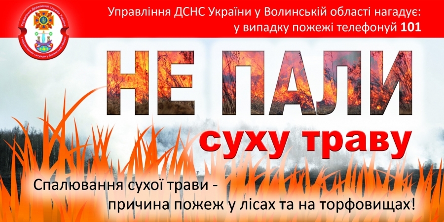 Луцький МРВ УДСНС України у Волинській області звертається до усіх громадян: не спалюйте суху траву та не провокуйте виникнення пожеж, котрі завдають чимало збитків господарству краю!