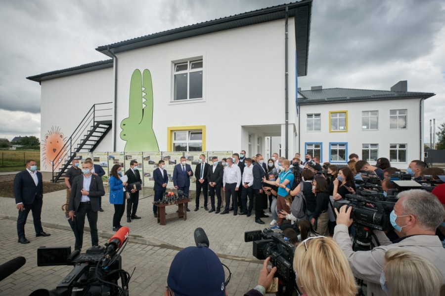Під час робочої поїздки до Волинської області Президент України Володимир Зеленський відвідав новозбудований дитячий садок у селі Крупа Підгайцівської об’єднаної територіальної громади, який було зведено в межах реалізації Національної програми «Велике будівництво».