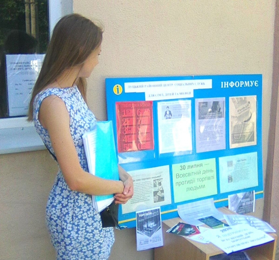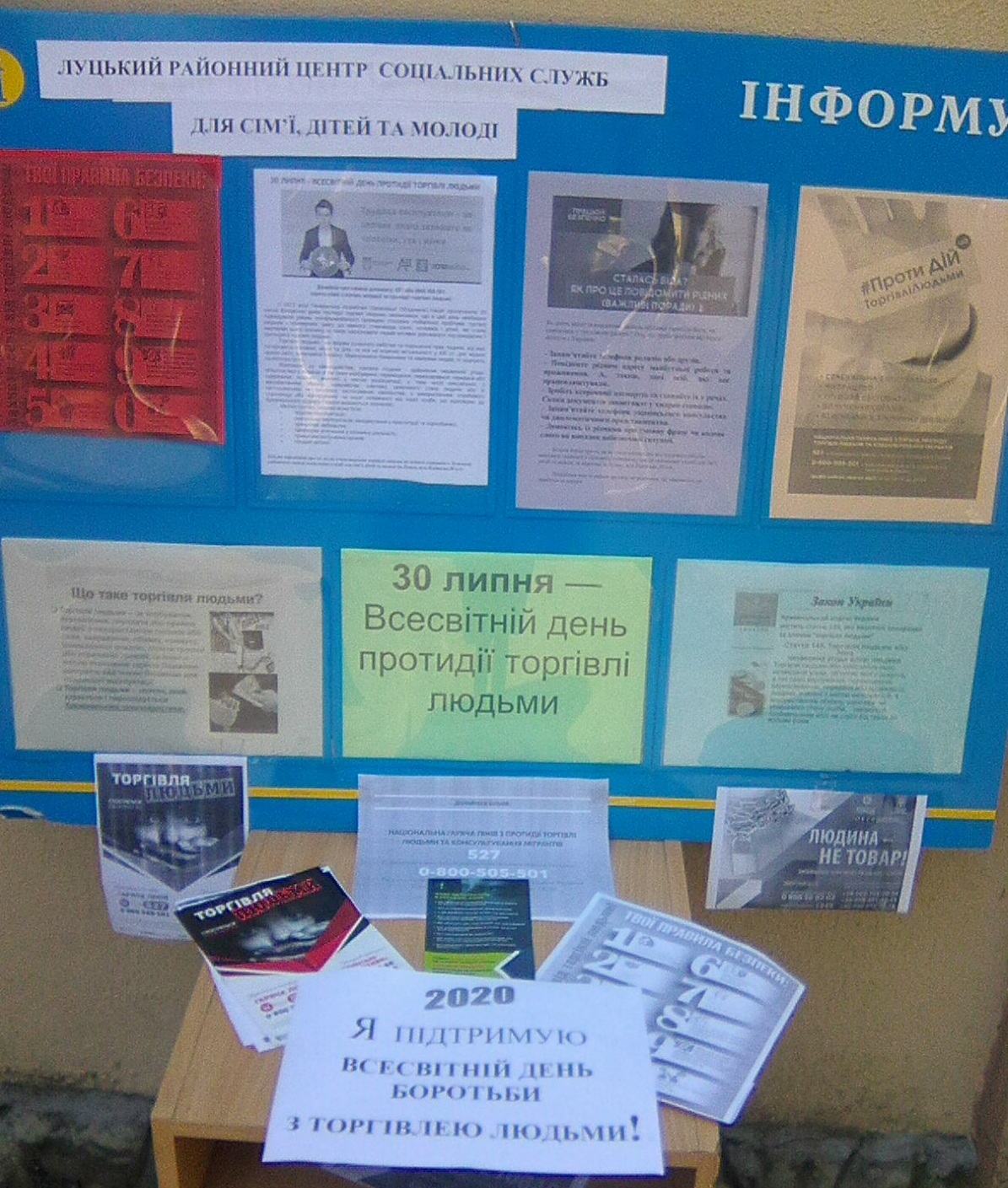 Саме тому сьогодні 30 липня у Всесвітній день боротьби з торгівлею людьми Луцький районний центр соціальних служб для сім’ї, дітей та молоді відділу освіти та культури Луцької РДА було проведено вуличну інформаційну акцію «Торгівля людьми – стосується кожного!».