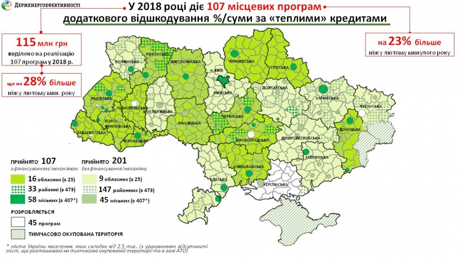 Станом на сьогодні прийнято 107 місцевих програм додаткової підтримки населення та ОСББ при утепленні житла. Це на 23% більше, ніж у лютому минулого року, коли була лише 81 така програма.