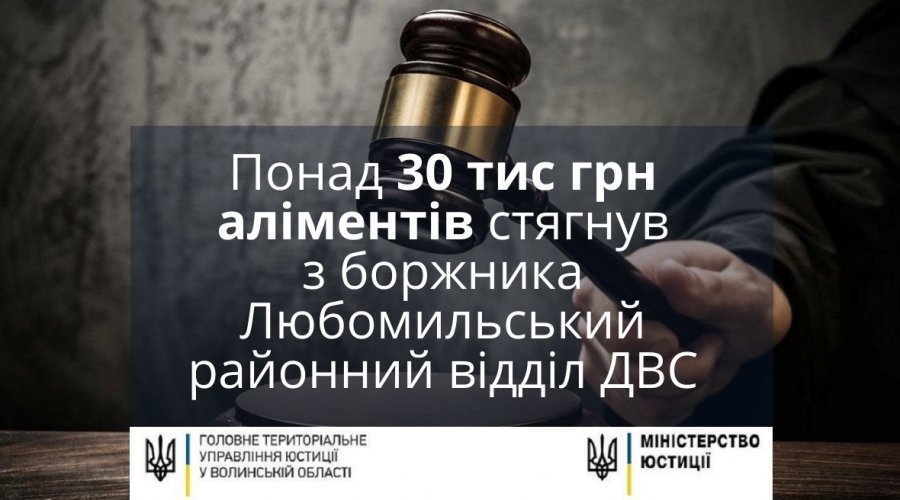 "Понад 30 тисяч аліментів стягнув з боржника Любомильський районний відділ ДВС У виконавчому провадженні з примусового виконання виконавчого листа про стягнення аліментів на утримання неповнолітньої дитини боржником сплачено заборгованість по аліментах, яка становила 32 187 гривень", - очільник юстиції Волині Антон Кустик.