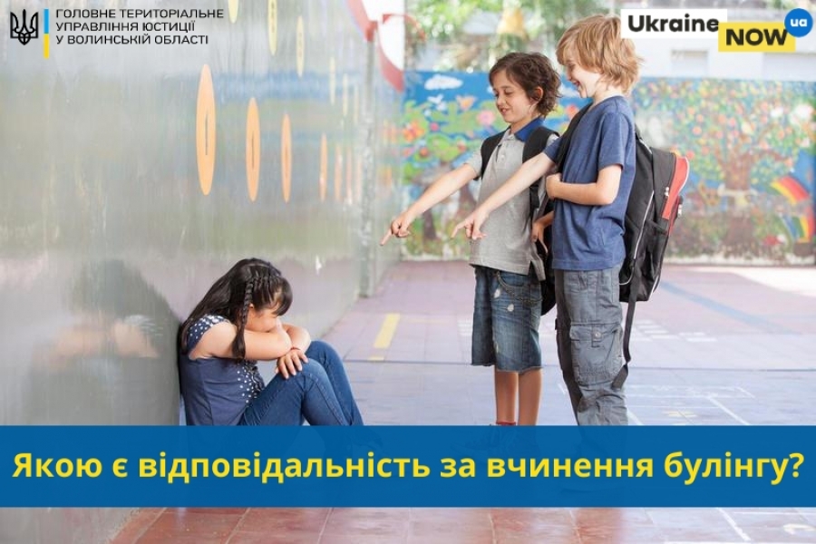 Розпочався новий навчальний рік, який відкриває для дітей можливість здобути безцінні знання для свого розвитку та віднайти друзів на все життя. Проте поряд із позитивними перспективами, які надають заклади освіти, виникає негативне явище булінгу, що виявляється у систематичному переслідуванні з образами, цькуванням, упередженим ставленням у навчальному середовищі. Юстиція Волині продовжує інформування громадян щодо протидії цій проблемі. Тож, хочемо нагадати Вам, якою є відповідальність за вчинення булінгу.Тож за булінг неповнолітньої чи малолітньої особи передбачається штраф від 850 до 1700 грн або громадські роботи від 20 до 40 годин.Якщо булінг вчинений групою осіб або повторно протягом року після накладення адміністративного стягнення, законом встановлено штраф від 1700 до 3400 грн або громадські роботи на строк від 40 до 60 годин.Якщо знущання вчинить дитина до 16 років — відповідатимуть її батьки або особи, що їх заміняють. До них будуть застосовані штраф від 850 до 1700 грн або громадські роботи на строк від 20 до 40 годин.Якщо керівник закладу освіти не повідомить органи Національної поліції України про відомі йому випадки цькування серед учнів, до нього буде застосоване покарання у вигляді штрафу від 850 до 1700 грн або виправних робіт до одного місяця з відрахуванням до 20 % заробітку.Пам`ятайте, якщо Ваша дитина стала жертвою булінгу, звернутися за кваліфікованою правовою допомогою можна до Єдиного контакт-центру безоплатної правової допомоги за номером 0 800 213 103. Він працює цілодобово, а також є безкоштовним у межах України.Окрім того, діти мають право безоплатно отримати послуги адвоката (складання заяв, представництво в суді). А отримати необхідну психологічну допомогу батьки та діти можуть за номером 116-111 на Національній дитячій «гарячій лінії» з питань захисту прав дітей.