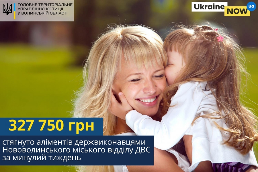 Тож на користь стягувачів за минулий тиждень Нововолинським міським відділом ДВС Волині із боржників стягнуто 327 750 грн заборгованості по аліментах.