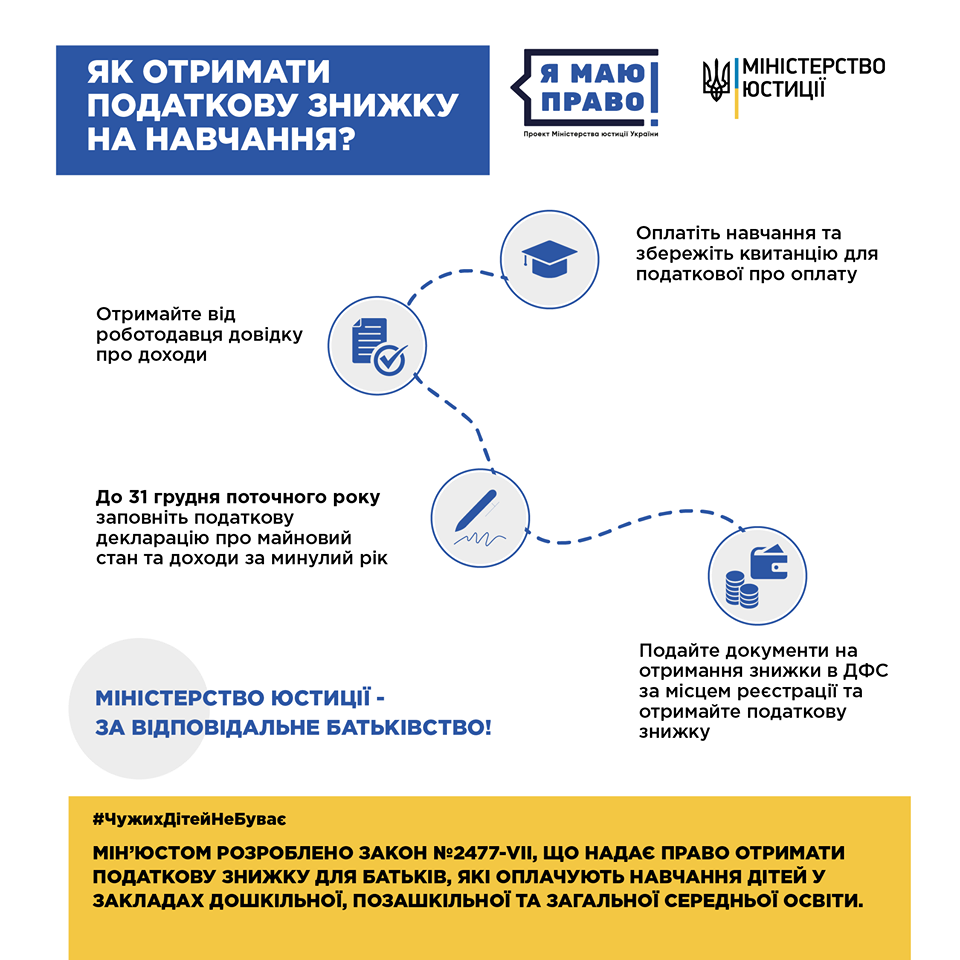 Податкова знижка - це сума, на яку дозволяється зменшити розмірсплаченого особою податку на доходи фізичних осіб (ПДФО) у зв'язку зоплатою нею послуг навчання.Як отримати податкову знижку - дивіться в наших матеріалах ⤵️Пам'ятайте: