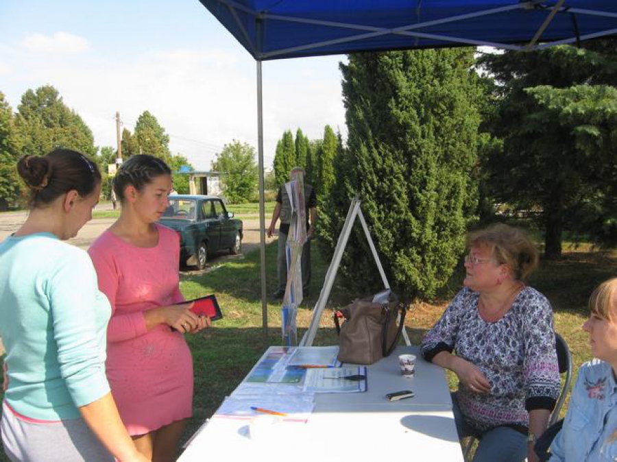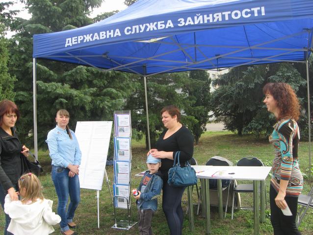 Всі бажаючі мали можливість ознайомитися з навчальними закладами регіону та їх довідниками. Особливо цікавилися послугами центру зайнятості жінки з дітьми, випускники вищих і професійно – технічних навчальних закладів, вимушені переселенці із зони АТО, які цікавилися питаннями реєстрації в центрі зайнятості за відсутності прописки в нашому районі.