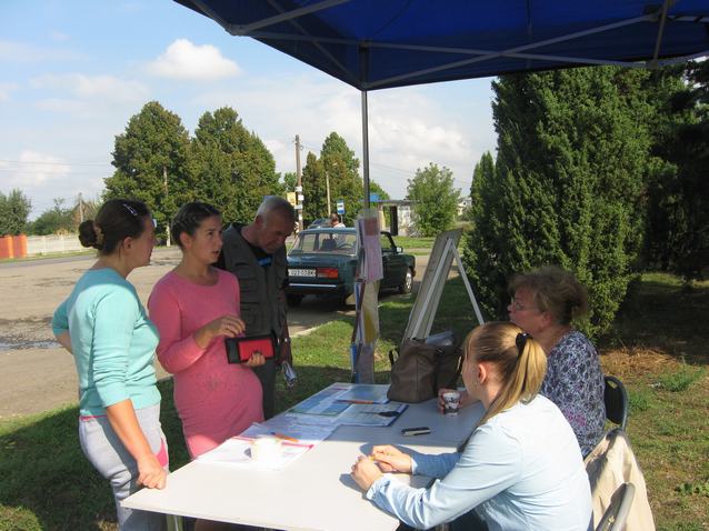 У рамках заходу директор центру зайнятості Ірина Анатоліївна Овадюк з фахівцями ознайомили присутніх з актуальними вакансіями на ринку праці району та за його межами, порядком реєстрації громадян, які звертаються за сприянням у працевлаштуванні до Державної служби зайнятості, пропозиціями тимчасової зайнятості (громадськими та тимчасовими роботами).