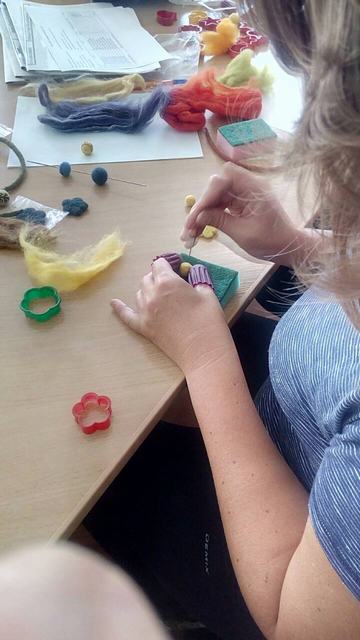 З натуральною вовною дуже приємно працювати, вона тепла, жива, м'яка, різнобарвна. Вона просякнута любов'ю та позитивом. Не дивно, що цей природній матеріал посів помітне місце серед інших для хобі. Жінки побачили вироби з вовни, якими можна прикрасити не лише дітей, дорослих, так й інтер’єр оселі. Під час майстер-класу присутні дізнались про різновиди вовни, види валяння, інструменти, а також мали можливість оволодіти основами техніки сухого валяння. Прикраси, виготовлені ними під час заняття стануть чудовим доповненням до одягу.