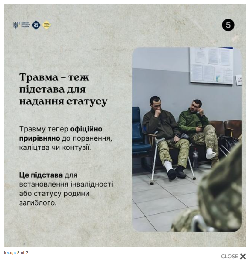 А травму прирівняли до поранення, каліцтва чи контузії. Це підстава для встановлення інвалідності або статусу родини загиблого.